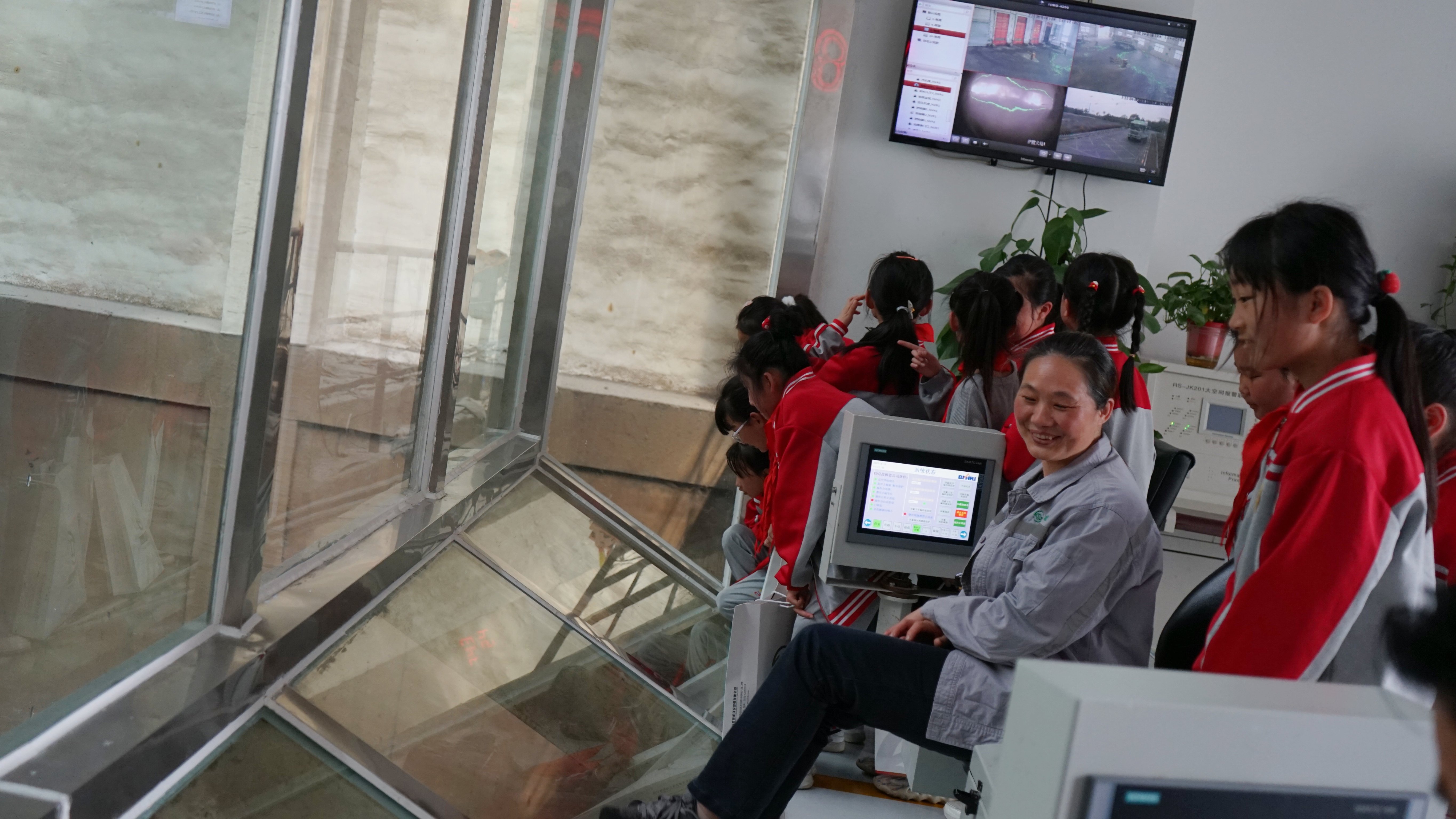 ~ 在集中控制室,师生们通过监控能实时观看垃圾运输和焚烧的实际情况,认识到生活垃圾分类后经过850度以上高温充分燃烧,实现由热能转化为电能,最大限度地实现垃圾资源再利用,改善了日益增长的垃圾量与环境恶化的局面,学生们发出了“垃圾也是一种资源”的感叹。最后讲解员带领大家参观了汽轮发电系统、烟气净化系统等区域,详细了解垃圾处置的工作流程以及焚烧垃圾发电厂的好处。
