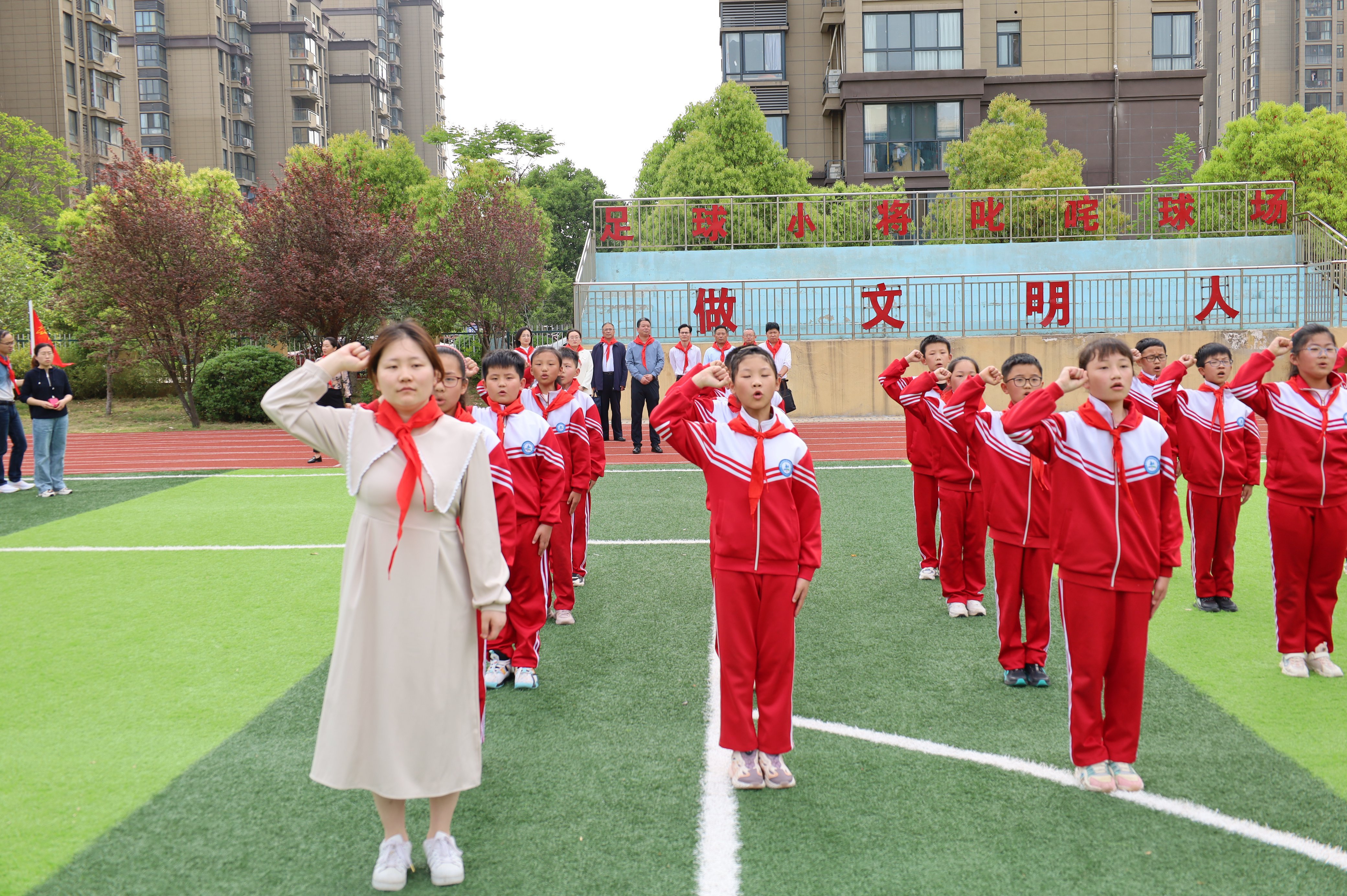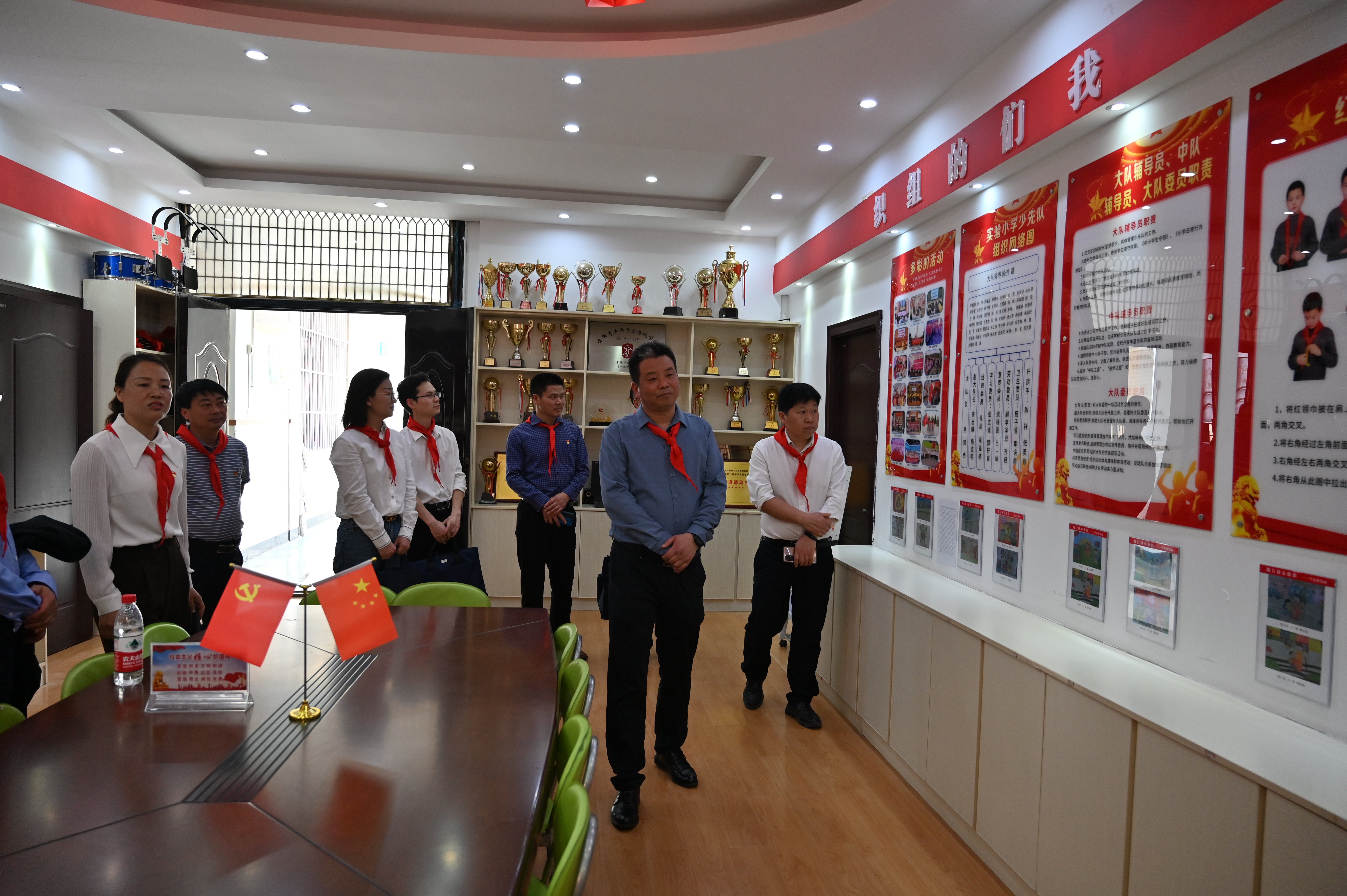 ~ 现场察看。实地查看少先队活动室、红领巾广播站、舞蹈社团、书法社团等,了解阵地建设情况。