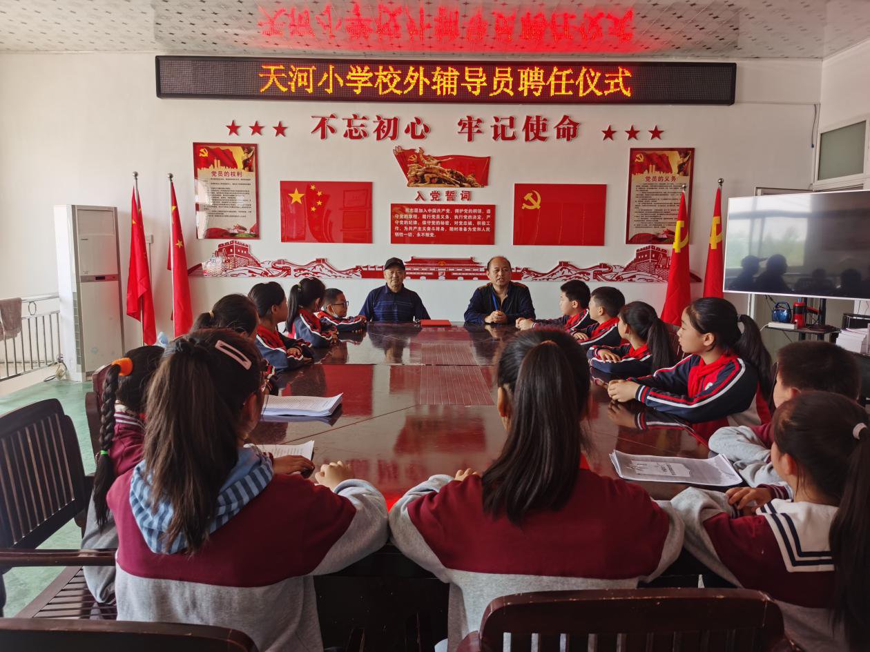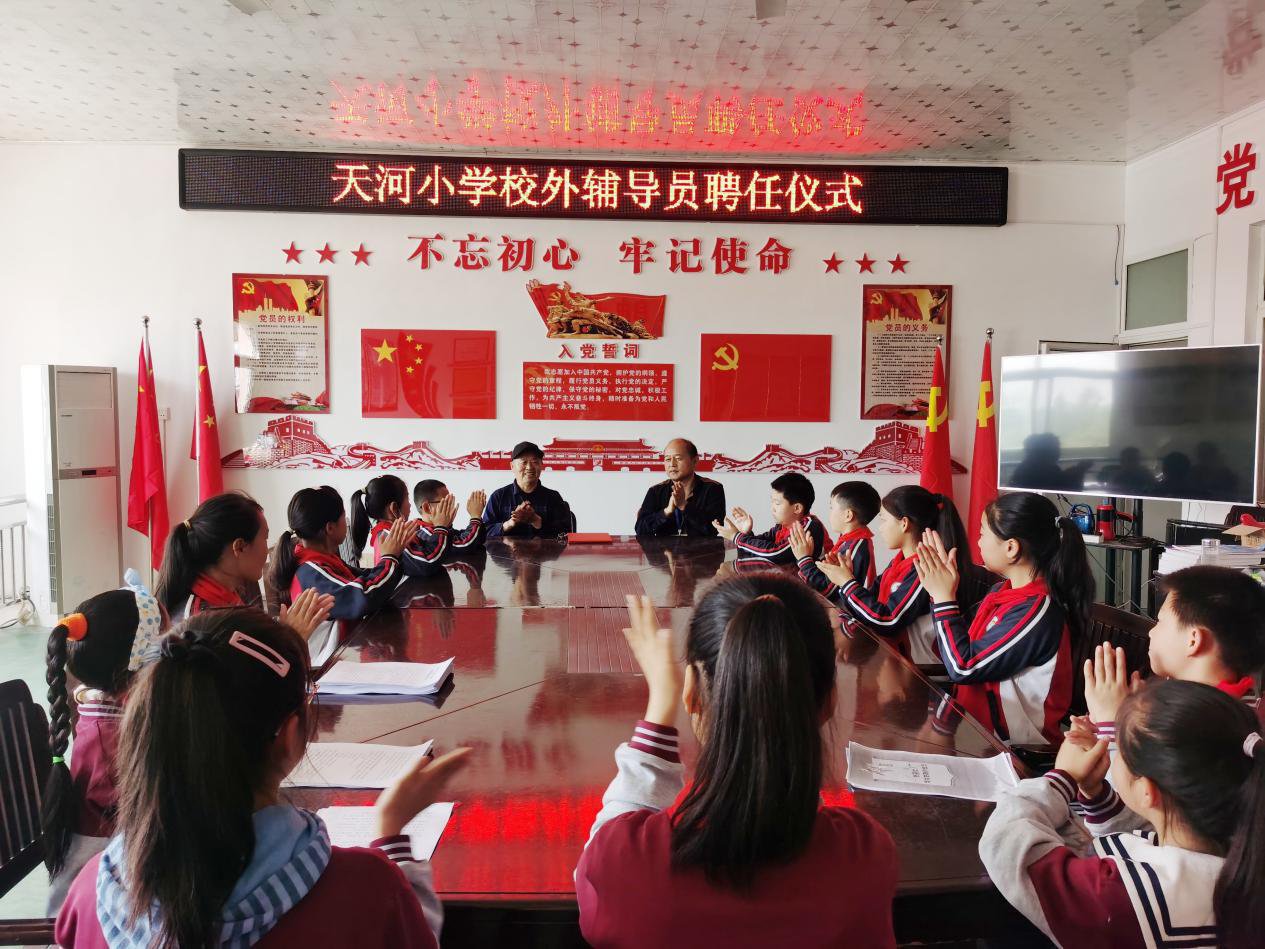 ~ 为贯彻落实《中共中央关于全面加强新时代少先队工作的意见》,充分发挥先进典型示范引领和少先队校外辅导员在少先队工作中的重要作用,营造全员、全方位育人的浓厚氛围,形成全社会共同关心支持少先队工作的良好局面,按照共青团中央、教育部、人力资源社会保障部、全国少工委《关于加强新时代少先队辅导员队伍建设的意见》要求,2023年4月20日上午,定远县天河小学在学校会议室举行校外辅导员聘任仪式。