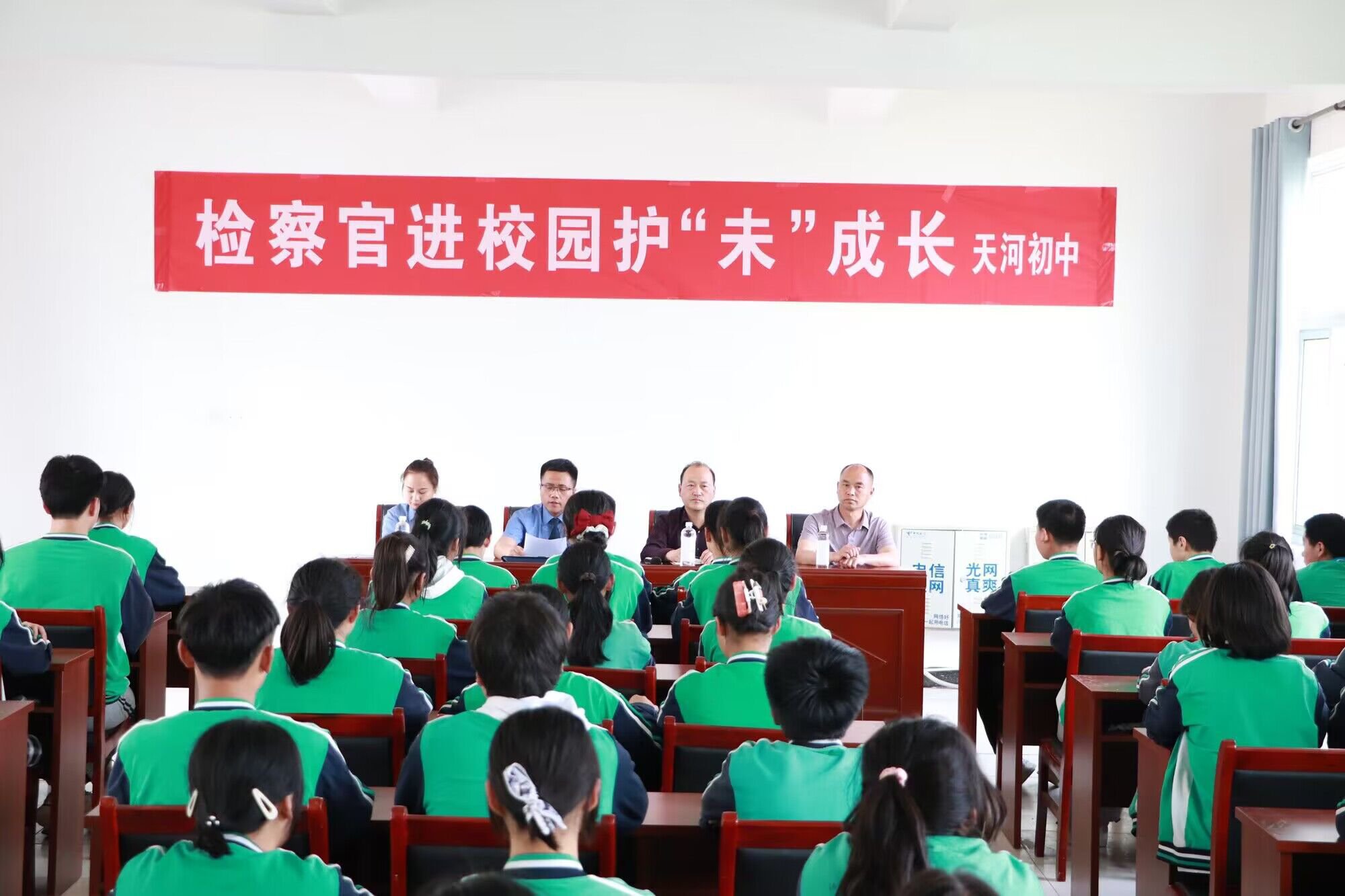 ~ 为了进一步增强同学们的法治意识和自我保护能力,更好地维护未成年人身心健康成长,4月20日,定远县人民检察院检察官杨正流等一行走进天河初中,开展送法进校园护“未”活动。