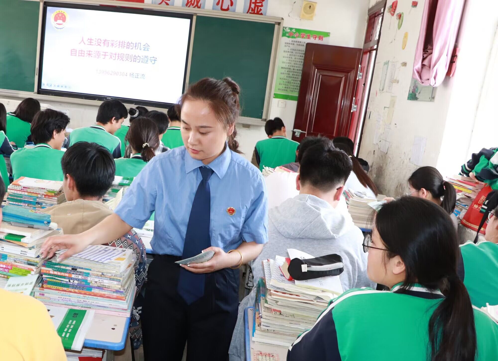 ~ 授课现场,授课检察官针对未成年人校园欺凌、校园安全、网络电信诈骗等问题展开了系列论述,并通过生动的案例,讲解校园欺凌、校园暴力引发的违法犯罪行为给社会、校园、家人及自己带来的危害,引导学生们要自觉尊法、学法、守法、用法。