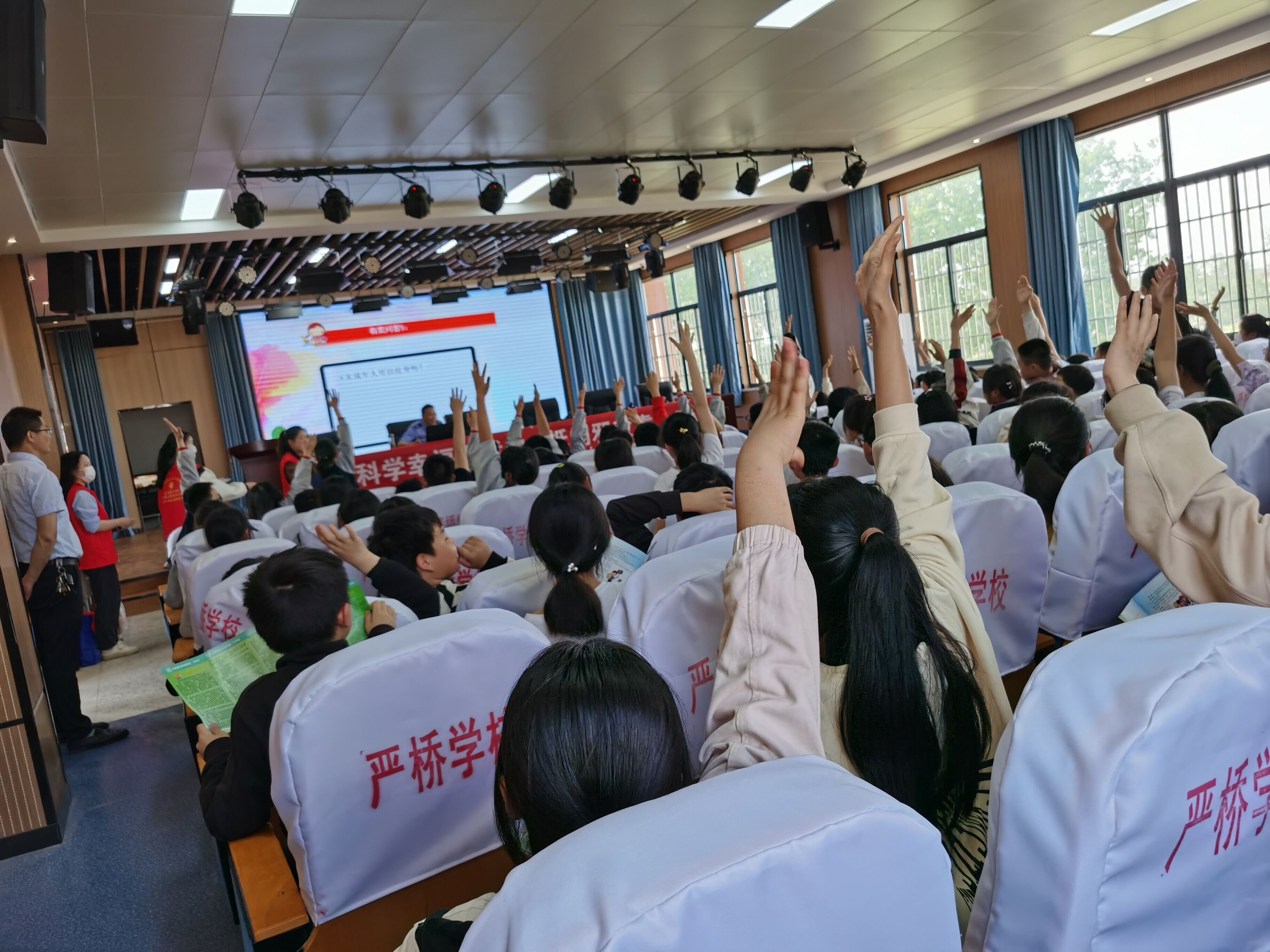 ~ 活动由校党支部书记、校长李树先主持。严桥乡未成年人保护办公室民政办蒋主任首先要求同学们做个知发、懂法、护法的好少年。严桥司法所所长罗元勇就什么是未成年人,什么是法,学生应有的法治意识以及如何提高自身的法律知识、安全常识等进行了详细讲解,并结合一系列真实案例对同学们介绍了遇到校园欺凌时应该怎么办,重点讲解了安全防范方法,提醒同学们要提高安全意识,遇到可疑情况时,及时拨打报警电话咨询。讲座结束后,进行了普法有奖问答活动,活动在同学们高涨的抢答中结束。普法志愿者们向学生发放了《未成年人维权篇读本》。