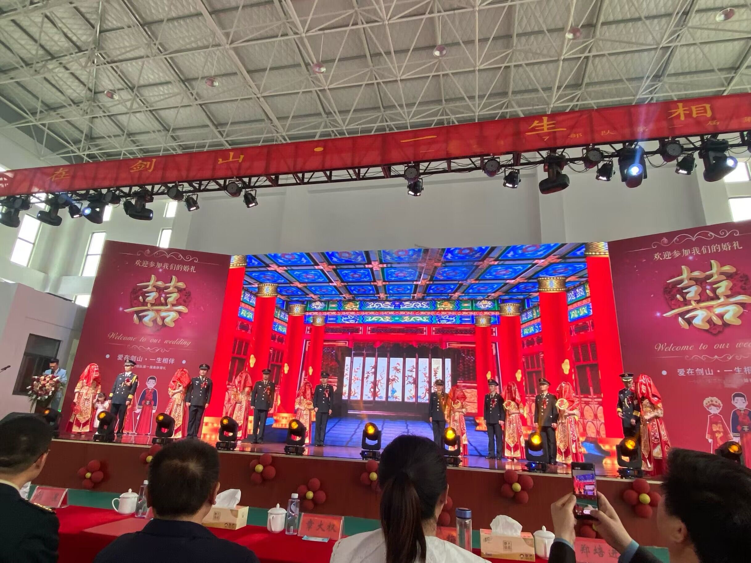 ~ 此次活动是该部队举办的首届集体婚礼,新人通过这样的形式走进婚姻殿堂,官兵的归属感、获得感满满,极大激发了他们扎根部队、建功军营的决心!(图文:李月 审核:黄海山)