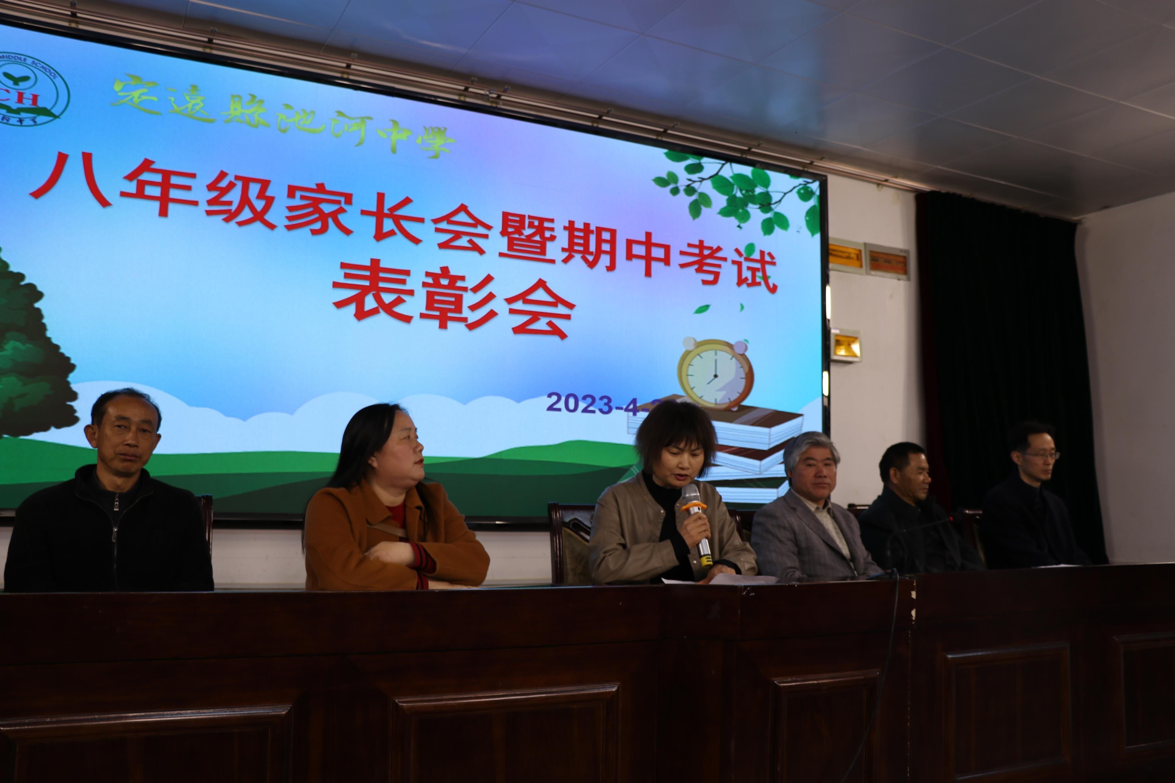 ~ 为了充分展示学校育人管理的良好氛围,使广大家长更好更全面地了解自己孩子在校学习生活情况, 4月23日,定远县池河中学八年级召开了寄宿制学生家长会,共有约200名学生家长来校参会。分管年级工作的副校长陆培高出席会议并发表重要讲话,会议由政教处主任董世刚主持。