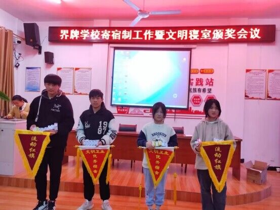 ~ “双减”政策的出台,让教育聚焦五育并举促学生全面发展。劳动教育是全面发展的有力支撑点,具有独特的育人价值。为了弘扬学生劳动精神,教育引导学生树立正确的劳动观念,培养学生养成良好的劳动习惯,2023年4月25日,定远县界牌学校召开寄宿制暨文明寝室颁奖会表彰奖励大会。会议由分管副校长肖鹏主持,宿舍管理人员、各班主任和全体寄宿生参会。