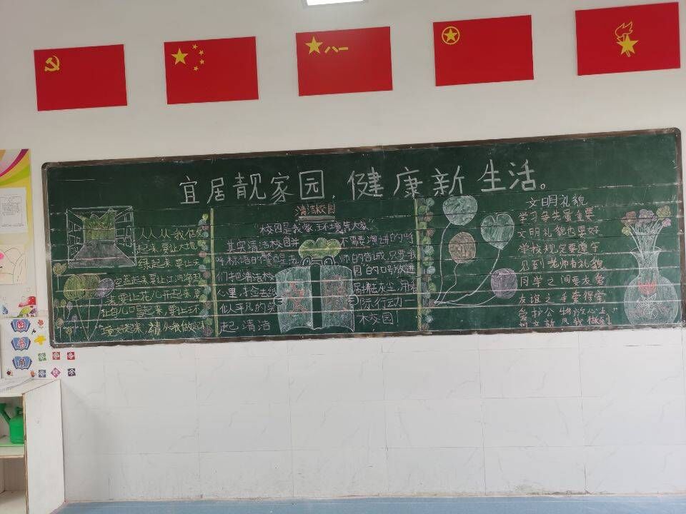 ~ 本次活动的主题为“宜居靓家园 健康新生活”。活动中,学校首先利用电子屏播放爱国卫生运动标语,利用周一的升旗仪式进行国旗下讲话,营造浓郁的宣传氛围。活动中,组织全体师生进行了一次全校大扫除,同时号召全体学生在家与家长一起开展“小手拉大手、一起靓家园”庭院大扫除活动。活动中,各班召开以“宜居靓家园 健康新生活”为主题的班队会,班主任在会上对同学们进行了深刻的爱国卫生教育,并引导同学们积极创作主题黑板报与手抄报。(图文:赵悦 审核:罗培齐)