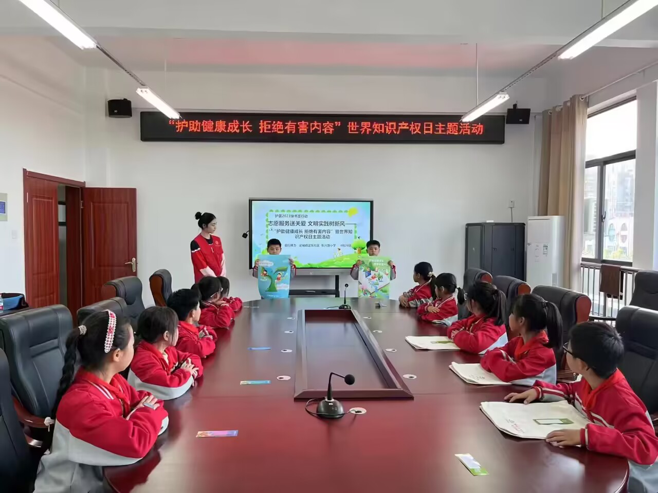 ~ 为深入推进“扫黄打非·护苗”行动,引导青少年有效抵制有害出版物和不良信息,4月26日下午,定远县扫黄办联合定城镇定东社区志愿者走进实验小学教育集团东兴路小学开展 “护助健康成长、拒绝有害内容”暨世界知识产权日主题活动。