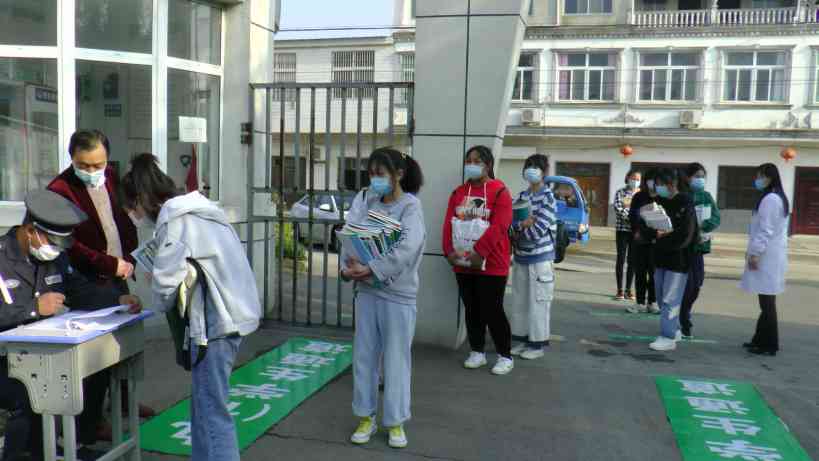 4月20日,定远县育才学校初二、高二学生返校复学。县卫健委熊成刚、赵何指导员现场指导返校复学工作。 学生到校后,在老师的引导下,按照指定通道、保持一米距离...