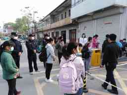 4月20日,定远县连江学校校门口处,该校防控复学小组全体成员站好岗位,根据学校复学实施方案,对返校的全体初二师生进行测体温、查安康码、登记健康档案等防控措施,以保证该校...