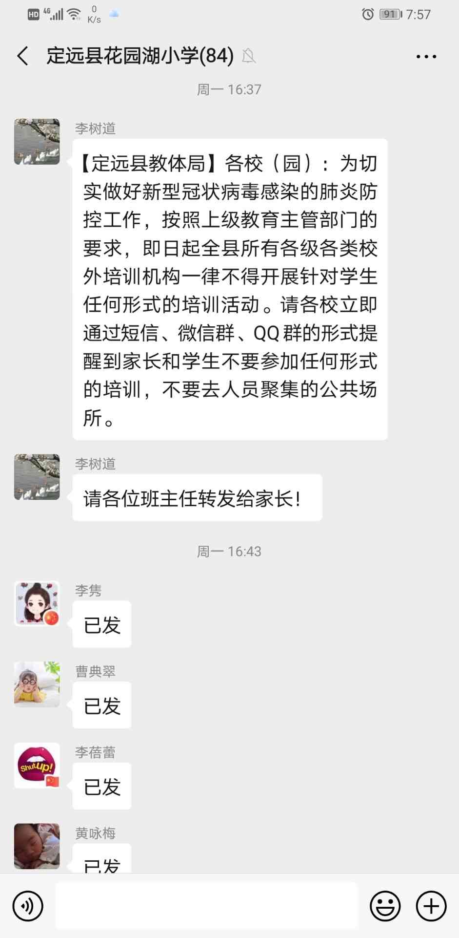 根据省、市、县教育部门关于新型冠状病毒肺炎防疫防控工作的通知,定远县花园湖小学积极开展新型冠状病毒肺炎防疫防控工作。 ...