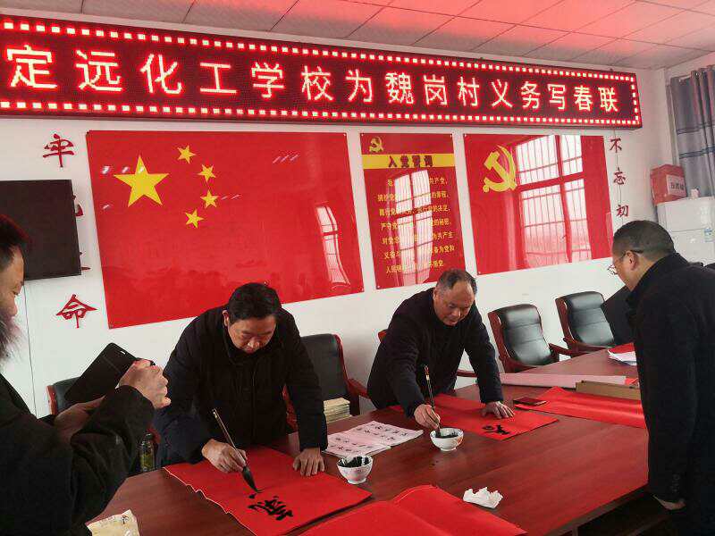 1月17日,正值农历小年,定远化工学校联合帮扶贫困村——炉桥镇魏岗村委会举办了一场写春联、送春联活动,营造了浓厚的春节氛围。 活动现场,人头攒动,热闹非凡。校书法爱...