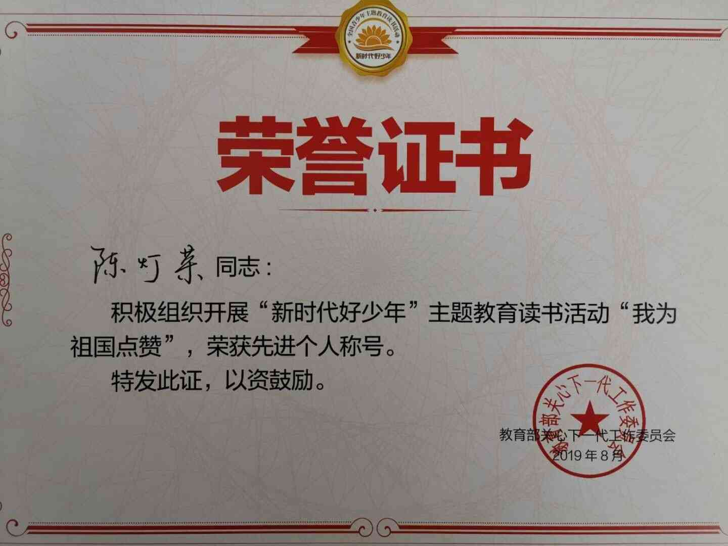近日,由教育部关心下一代工作委员会主办的“新时代好少年”主题教育读书活动“我为祖国点赞”研学、演讲朗诵交流展示中,定远县城北小学积极参赛,荣获教育部关心下一代工作委员会主题...