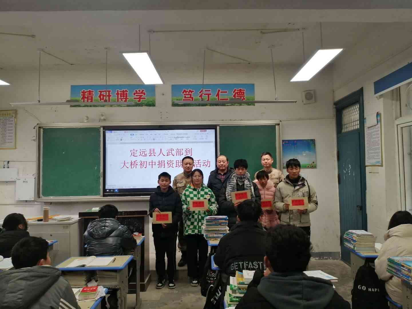 为进一步开展“军校共建”活动,切实地做好拥政爱民工作,1月5日,定远县人武部政委刘星一行来到大桥初中,为贫困学生捐资助学。大桥初中党支部书记、校长许培铜,副校长赵朝喜、...