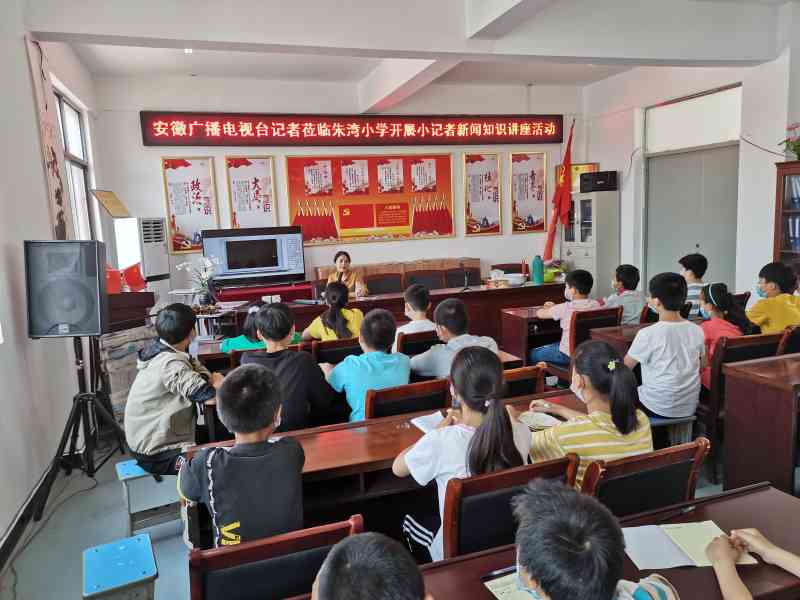 5月28日下午,“红色园丁”严明友同志邀请安徽广播电视台新闻综合广播记者孙玲娟为朱湾小学小记者举办新闻知识讲...