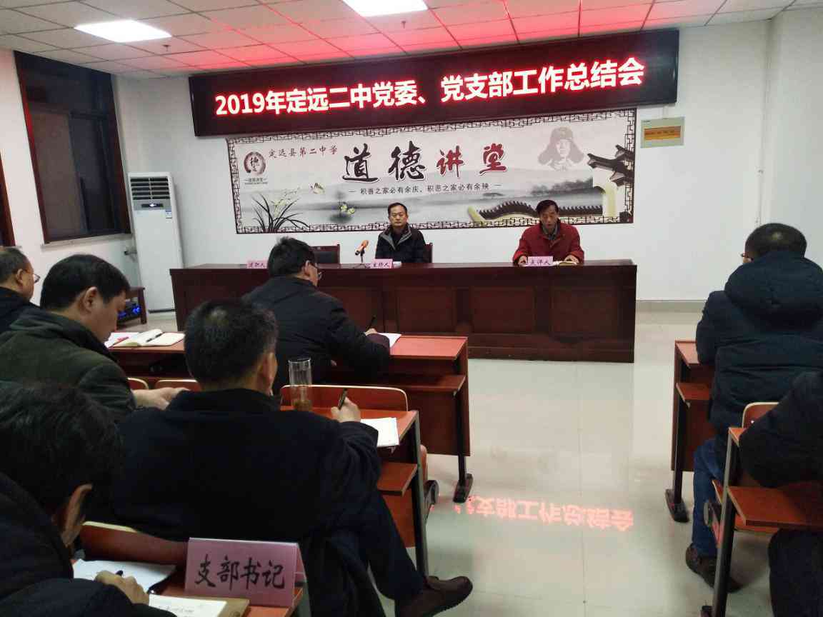 元月6日下午,定远二中召开了2019年度支部书记抓党的建设述职报告会。会议由校党委书记、校长胡建国主持,校级领导、支部书记、支部委员、年级领导、中层干部、党小组长等参与会议...