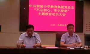 9月20日下午,定远县花园湖小学召开“不忘初心、牢记使命”主题教育动员会。会议由校党支部副书记、副校长许开松同志主持,全体教职工参加会议。 支部书记、校长李树道同志...