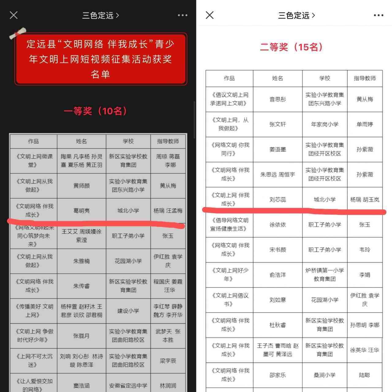 ~ 6月13日,由定远县委网信办、县文明办、县教体局联合开展的“文明网络 伴我成长”青少年文明上网短视频征集活动评选结果出炉,定远县城北小学传来佳讯。 ~ 本次活动中,城北小学四(...