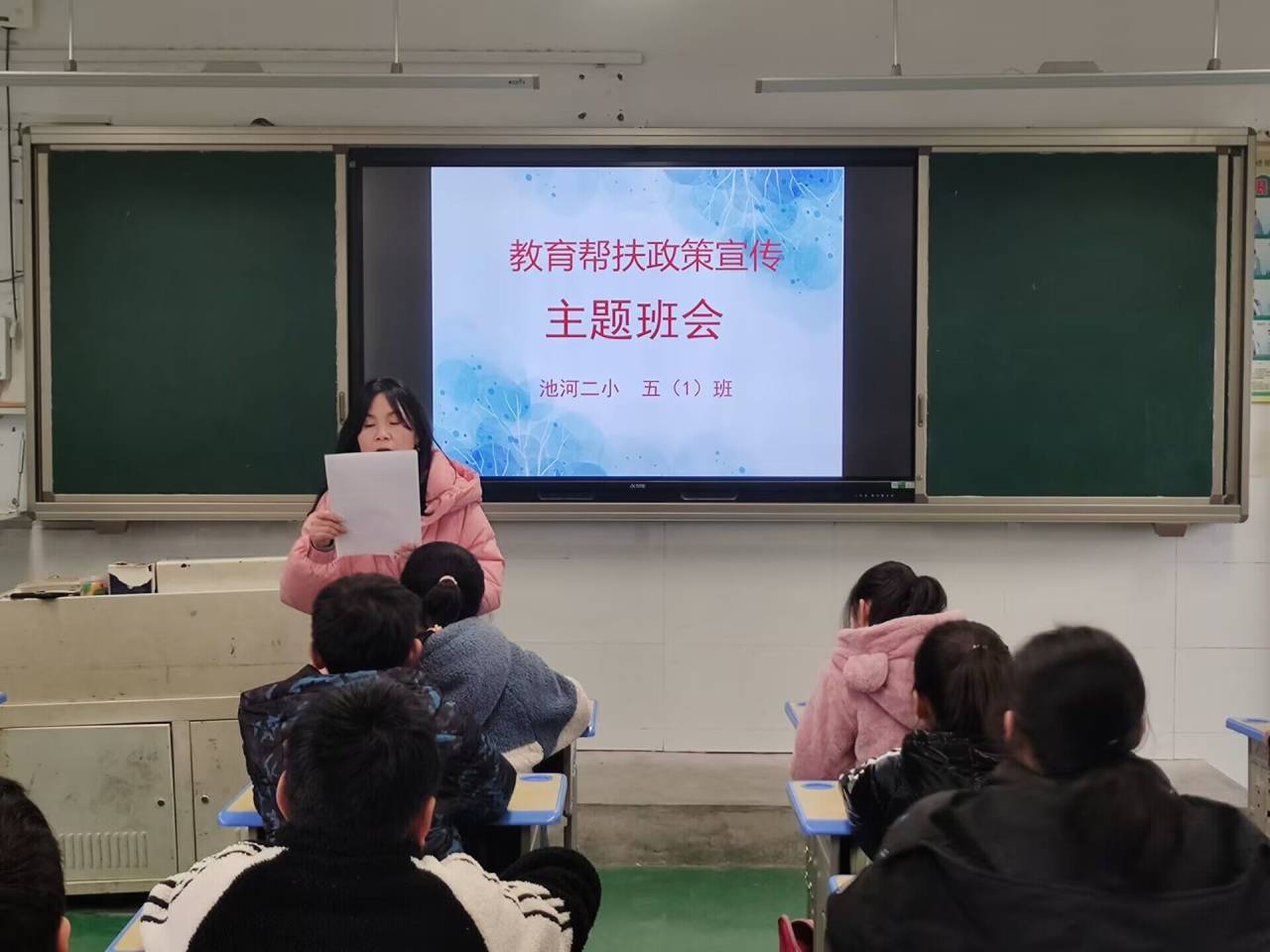 ~ 为进一步推进教育扶贫,宣传落实扶贫政策,共同关注贫困家庭,2月22日,定远县池河二小组织各班召开“教育帮扶政策宣传”主题班会。 ~ 在班会课上,各班主任提前备课,仔细研读政策...