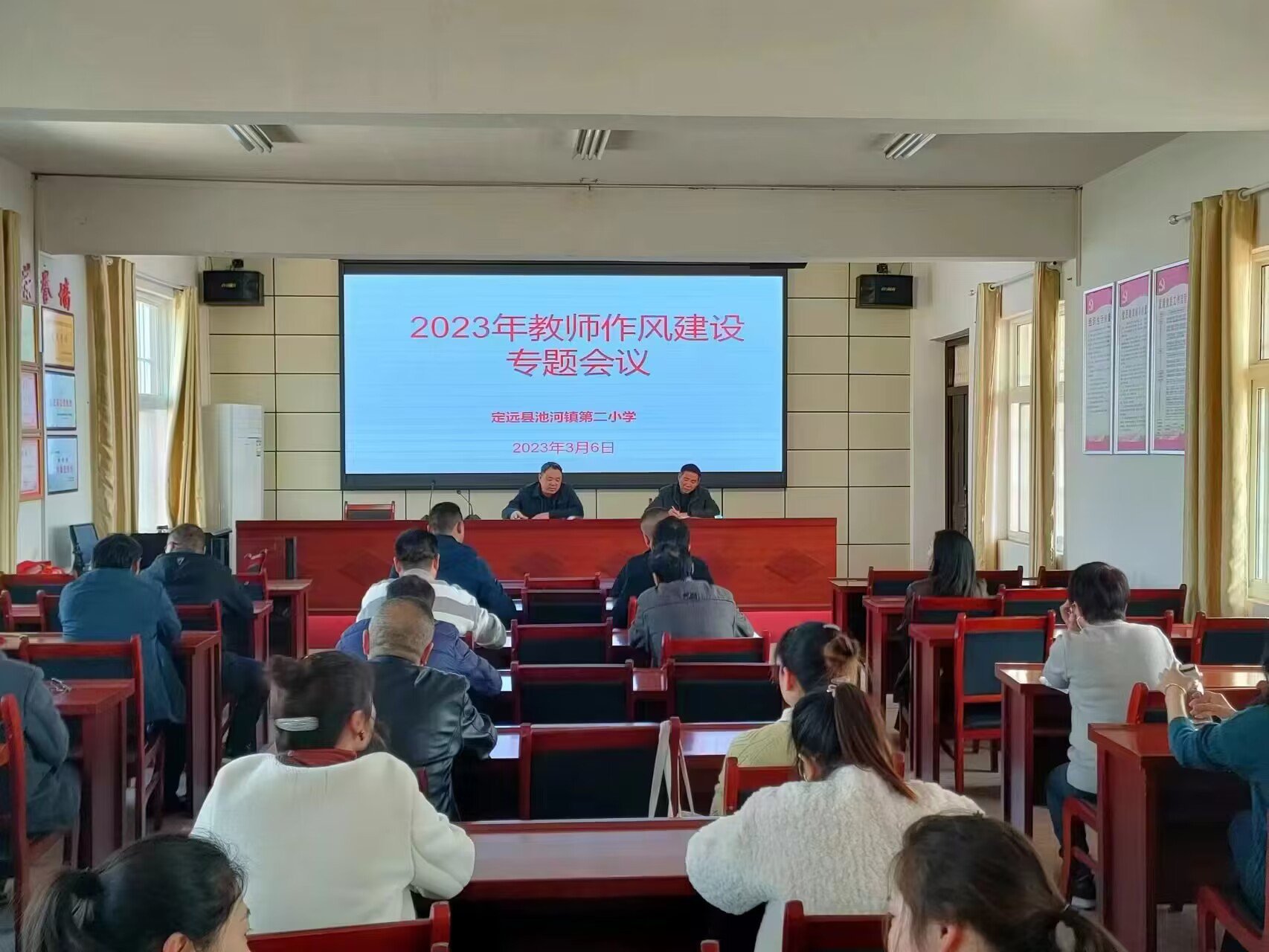 ~ 3月6日,定远县池河二小在会议室召开教师作风建设专题会议,该校党支部书记、校长陈锦武主持会议并讲话,全体教师参加会议。 ~ 会上,陈校长强调校园作风建设的重大意义,他认为作为教...