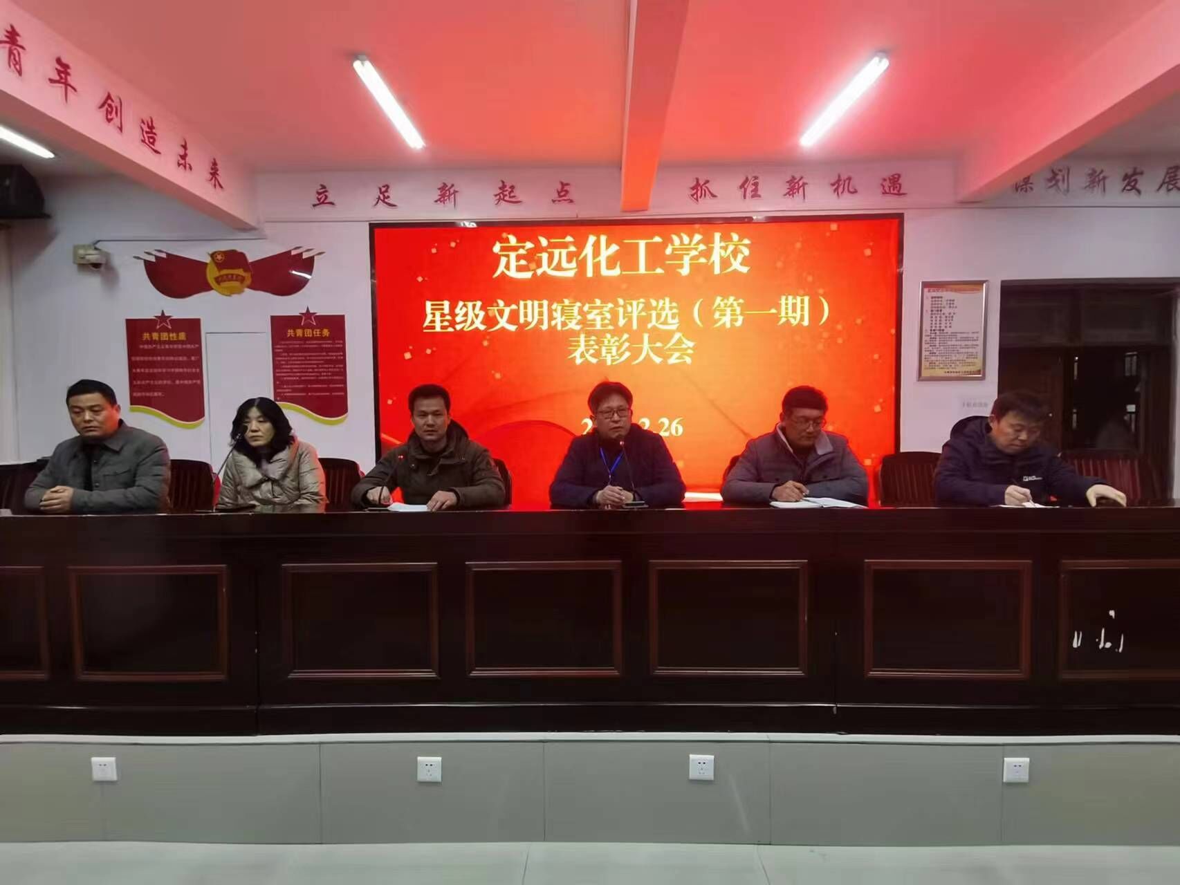 ~ 2月27日,定远化工学校在综合楼一楼会议室举行星级文明寝室评选表彰大会。校党委委员王家欢、团委书记李小为、年级主任、星级文明寝室班主任及寝室长参加会议,表彰大会由校工会主席陈邰...
