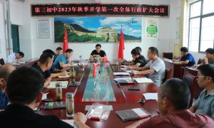 ~ 为及时谋划学校发展思路,全方位筹备开学工作,8月23日,定远县第三初级中学召开2023年秋季开学第一次行政扩大会议。会议由该校党支部书记、校长吴传东主持,全体行政人员、年级负责...