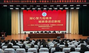 ~ 2月9日,定远三中在惟真讲堂召开2025-2026学年度第一学期期末工作总结暨寒假师德师风建设大会。学校全体教职工参会,会议由校长余忠亮主持。 ~ 会上,余忠亮从党建引领、教师...