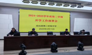 ~ 蛇年伊始,开学在即。2025年2月11日上午,定远县第二初中全体教职工齐聚报告厅,召开开学工作部署会,聚焦新形势,共谋新发展。 ~ 副校长王广正主持了会议。他给与会的各位领导和...