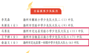 ~ 近日,2022年度安徽省“红领巾奖章”四星章、“优秀少先队员”、“优秀少先队辅导员”、“优秀少先队集体”主题宣传活动评选结果揭晓。定远县第一初中教育集团少先队员俞淑文同学获评“...