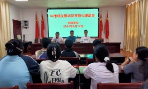 ~ 为确保中考安全有序进行,定远县范岗学校于6月12日召开了九年级学生中考工作专题会议。 ~ 会上,该校教导处负责人对考生进行了相关安全教育,并对学生考前心理进行了疏导。该校校长杨...