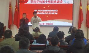 ~ 12月29日,定远县范岗学校开展“学习党的创新理论,争做新时代好青年”经典诵读活动。 ~ 活动前,各班师生精心组织,积极排练。活动中,同学们饱含深情地诵读了《沁园春·雪》、《我...
