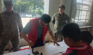 ~ 8月1日, 定远县范岗学校组织部分师生来到汽车试验场,参加驻皖某部队“军营开放日”活动。 ~ 活动中,随行的该校县书法家协会会员冯立章老师当堂泼墨挥毫“军民团结”,庆祝官兵们的...