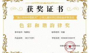 ~ 滁州市凤阳英华中学初中部陶果怡同学的作品《航天下的梦》(刘毓老师指导),在安徽省青少年科技教育协会举办的“我心中的中国航天”少年儿童科学幻想绘画比赛中荣获创新创意探索奖。 编辑...
