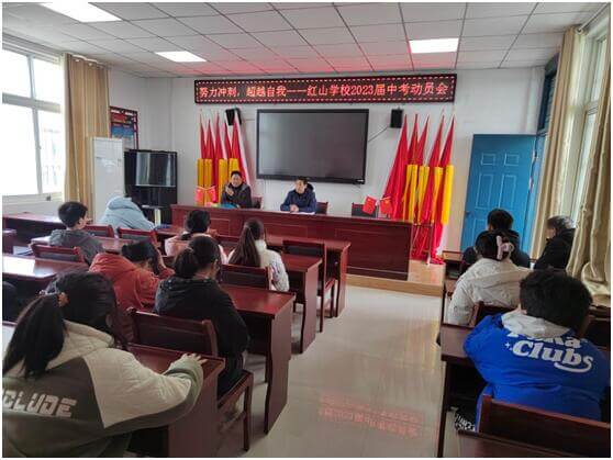 ~ 4月4日上午,定远县红山学校在会议室召开了“努力冲刺,超越自我”中考动员大会。“九年磨剑、七月试锋”,红山学校九年级师生同心,目标同向,信心百倍,迎接中考。 ~ 会上,九年级班...