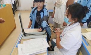 ~ 为确保广大师生身体健康和生命安全,有效预防结核病传播,9月23日,定远县蒋集镇中心卫生院对蒋集学校七年级学生进行健康体检暨结核病筛查工作。 ~ 医护人员走进教室对学生逐一进行血...