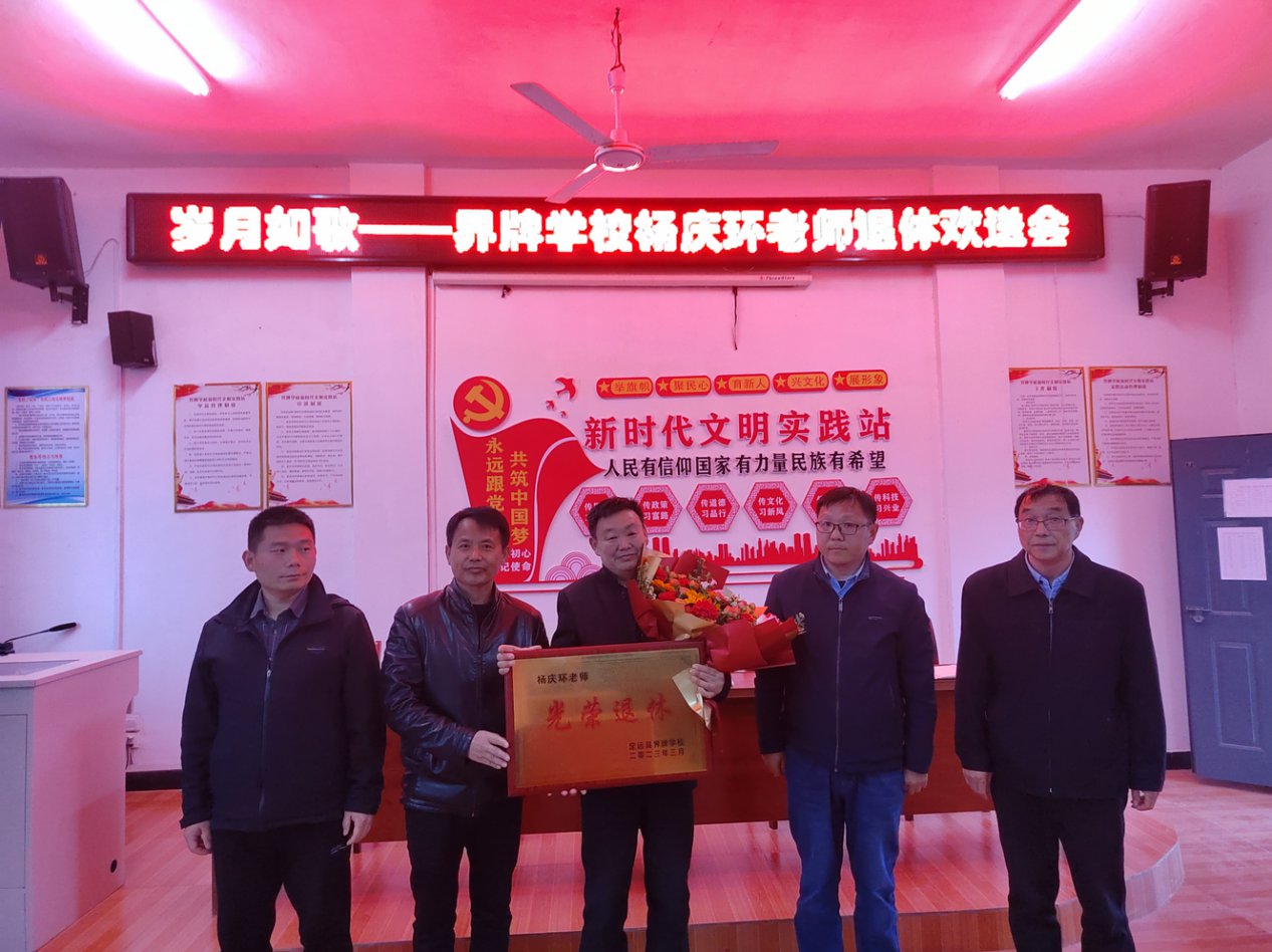 ~ 岁月如歌青春在,教育情怀代代传。为表达对耕耘教育岗位41载的退休教师杨庆环的感谢与敬意,增强教师职业荣誉感、认同感、归属感,近日,定远县界牌学校举行了朴素而又热烈的退休教师欢送...