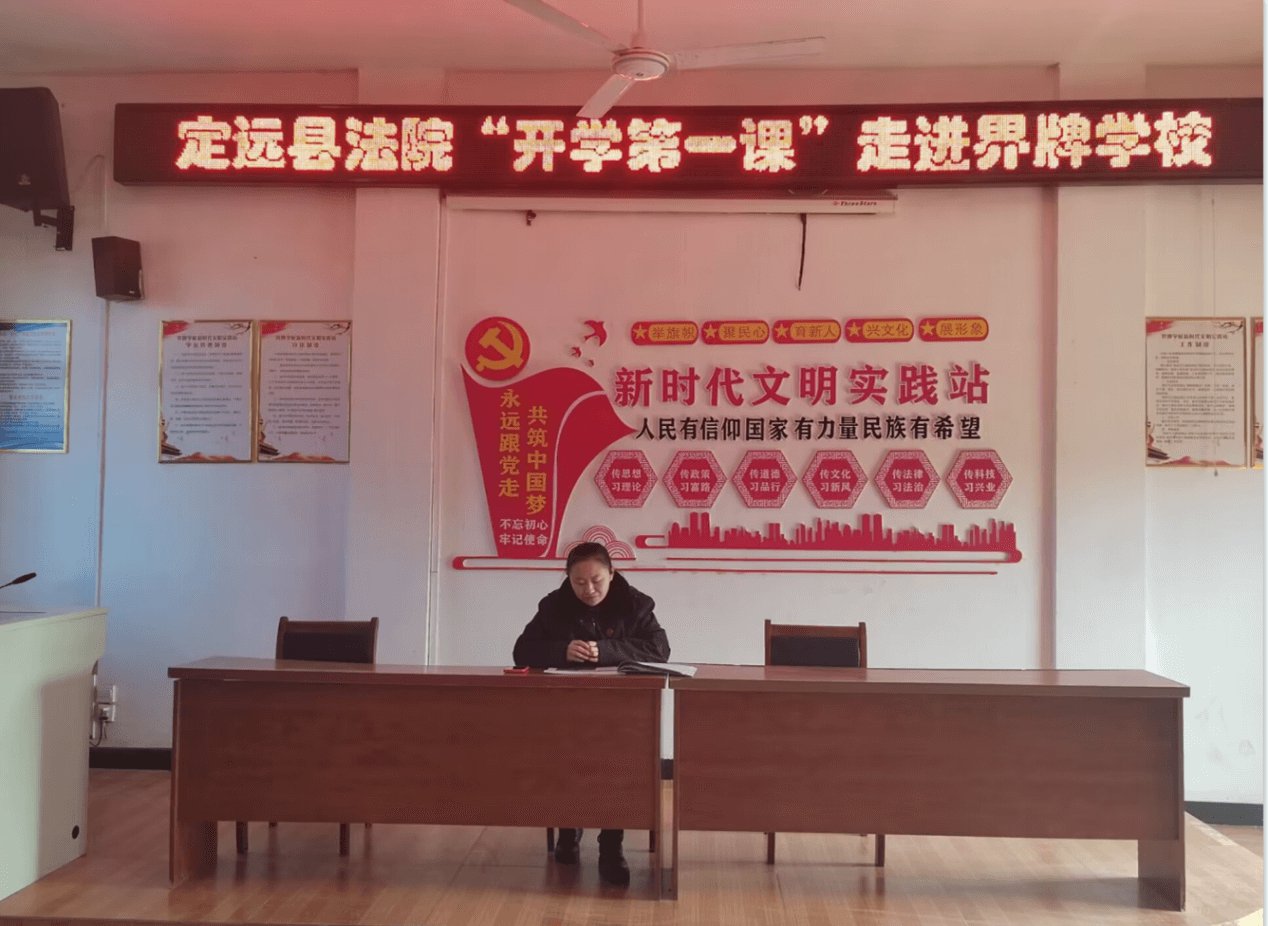 ~ 近日,定远县人民法院马达原法官一行组成的“开学第一课”普法教育宣讲团走进定远县界牌学校开展普法宣传活动,用法治“种子”开启春季“开学第一课”。 ~ 课上,马法官紧紧围绕《...