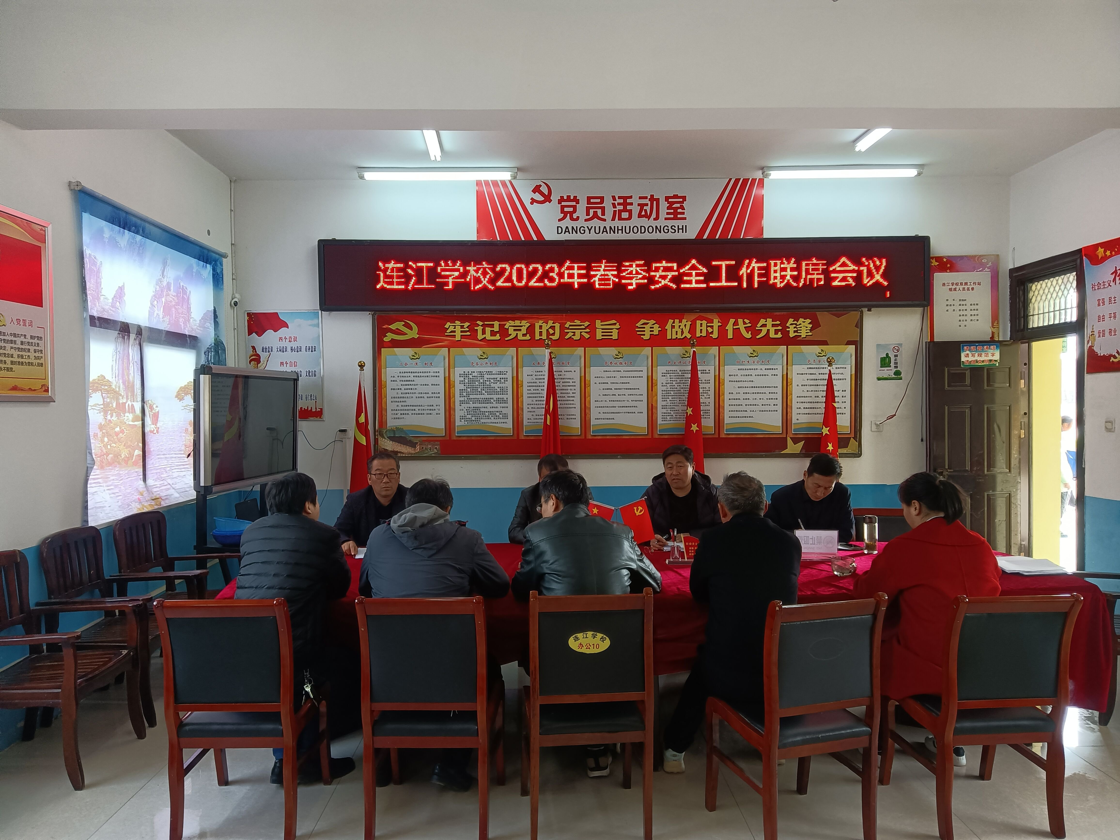 ~ 3月7日,定远县连江学校召开春季安全工作会议,该校校长黄锦树主持会议。 ~ 黄锦树在会上传达了上级有关安全工作会议精神,结合学校实际,对学生的心理健康、疫情防控、交通安全、防溺...
