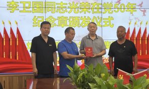 ~ 在党的光辉照耀下,定远县炉桥镇第二小学教育集团党支部于2024年7月4日为退休老教师李卫国同志举行了一场庄重而温馨的纪念章颁发仪式。 ~ 李卫国同志以其五十年如一日的忠诚与奉献...