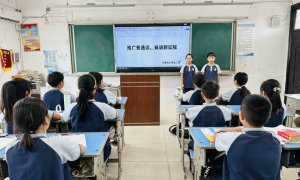 语言是一个民族的声音,是人与人沟通的桥梁。普通话是我国的通用语言,更是中国在世界舞台上的声音,是中国人的象征。定远县年家岗小学于本周开展了推广普通话宣传周。 各班班主任利用主题班会...