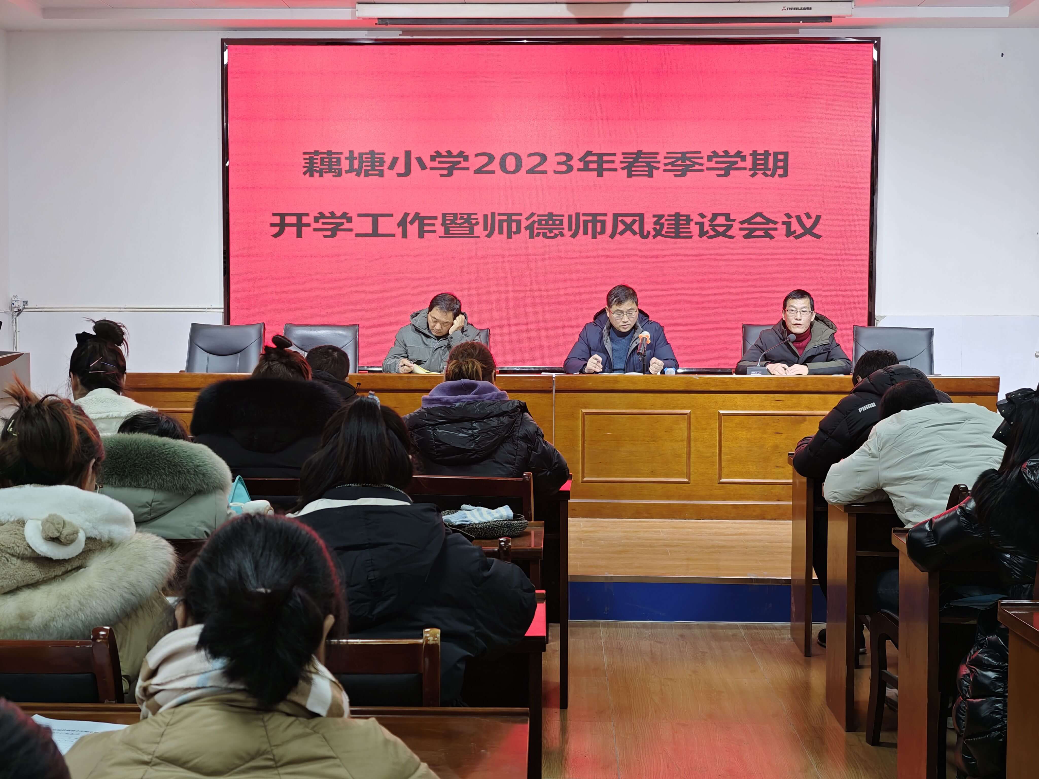 ~ 2月6日,定远县藕塘小学召开 2023年春季学期开学暨师德师风建设工作会议,全体教师参加了会议。 ~ 会上,校长罗培齐传达了县教体局开学准备工作会议精神,学习了相关文件,各部门...