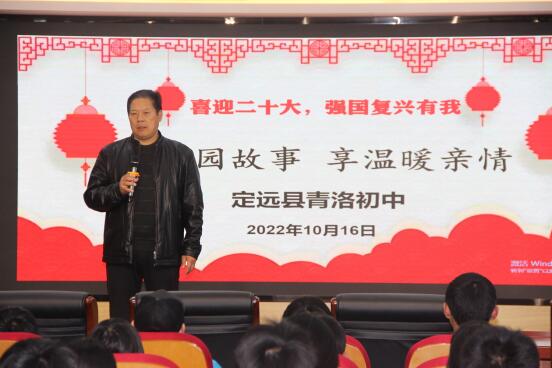 ~ 为喜迎党的二十大,坚定青少年跟党走的信念与决心,激励他们在生活中用心发现身边的感人故事,感受榜样的力量。2022年10月16日,定远县青洛初中在新综合楼三楼会议室开展了“讲校园...