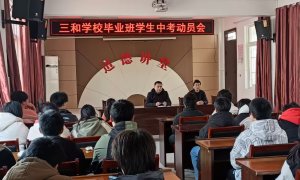 ~ 3月8日,定远县三和学校召开九年级全体学生会议,该校负责人蒋安奎对学生进行中考总动员,鼓励学生珍惜时间、鼓足干劲,以积极态度和切实行动应对中考。 ~ 当日上午,会议在该校综合楼...