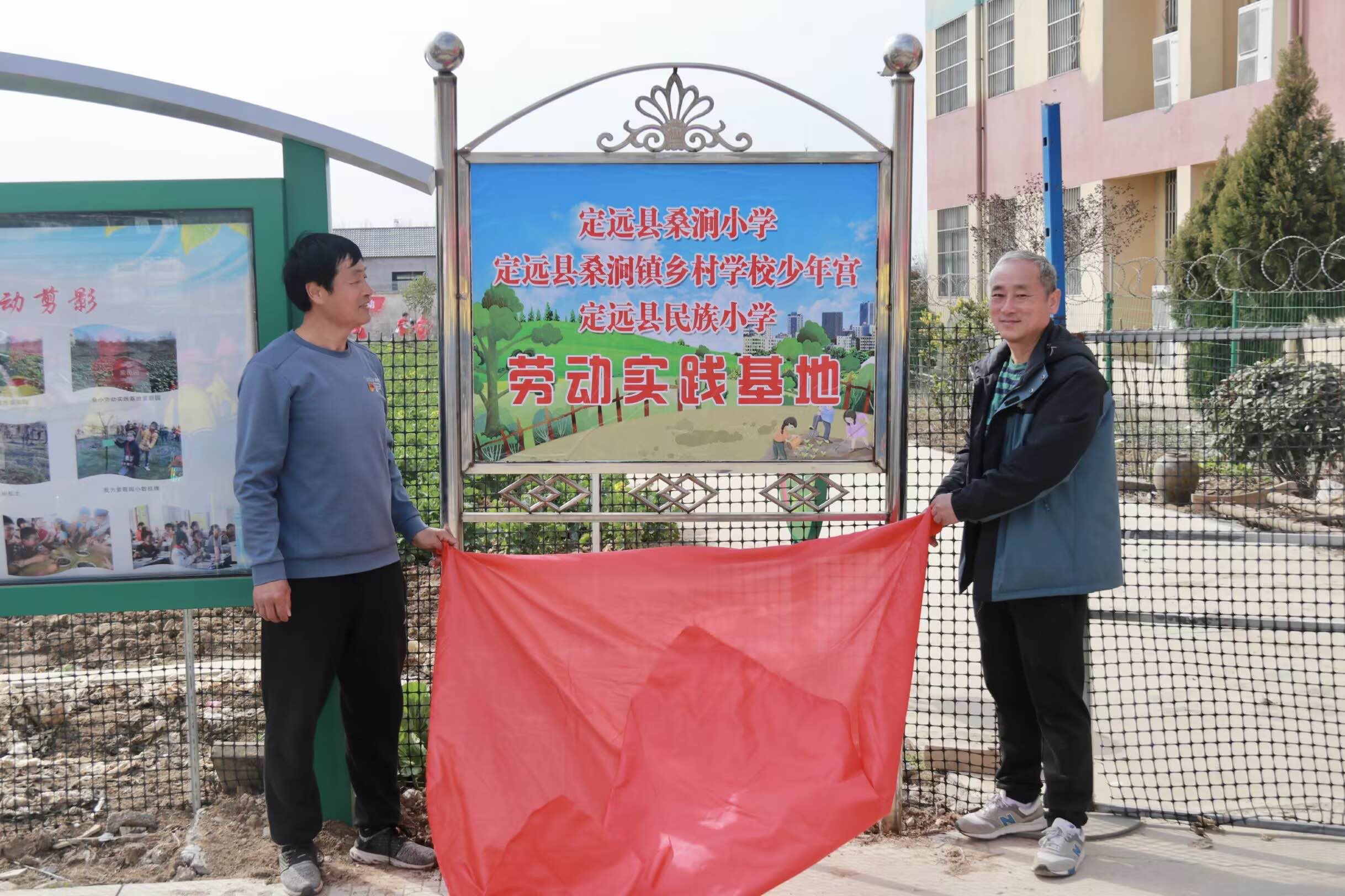 ~ 3月7日,定远县民族小学劳动实践基地揭牌仪式在桑涧镇乡村学校少年宫劳动实践基地举行,民族小学校长刘德俊和桑涧小学副校长孟凡如共同为基地揭牌,民族小学劳动教育、德育工作负责人和3...