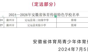 7月5日,安徽省体育局发布了关于《2024-2026年安徽省体育传统特色学校名单》的公示,其中定远县实验小学拟入选。 据了解,为深入贯彻落实中共中央办公厅、国务院办公厅《关于全面加...