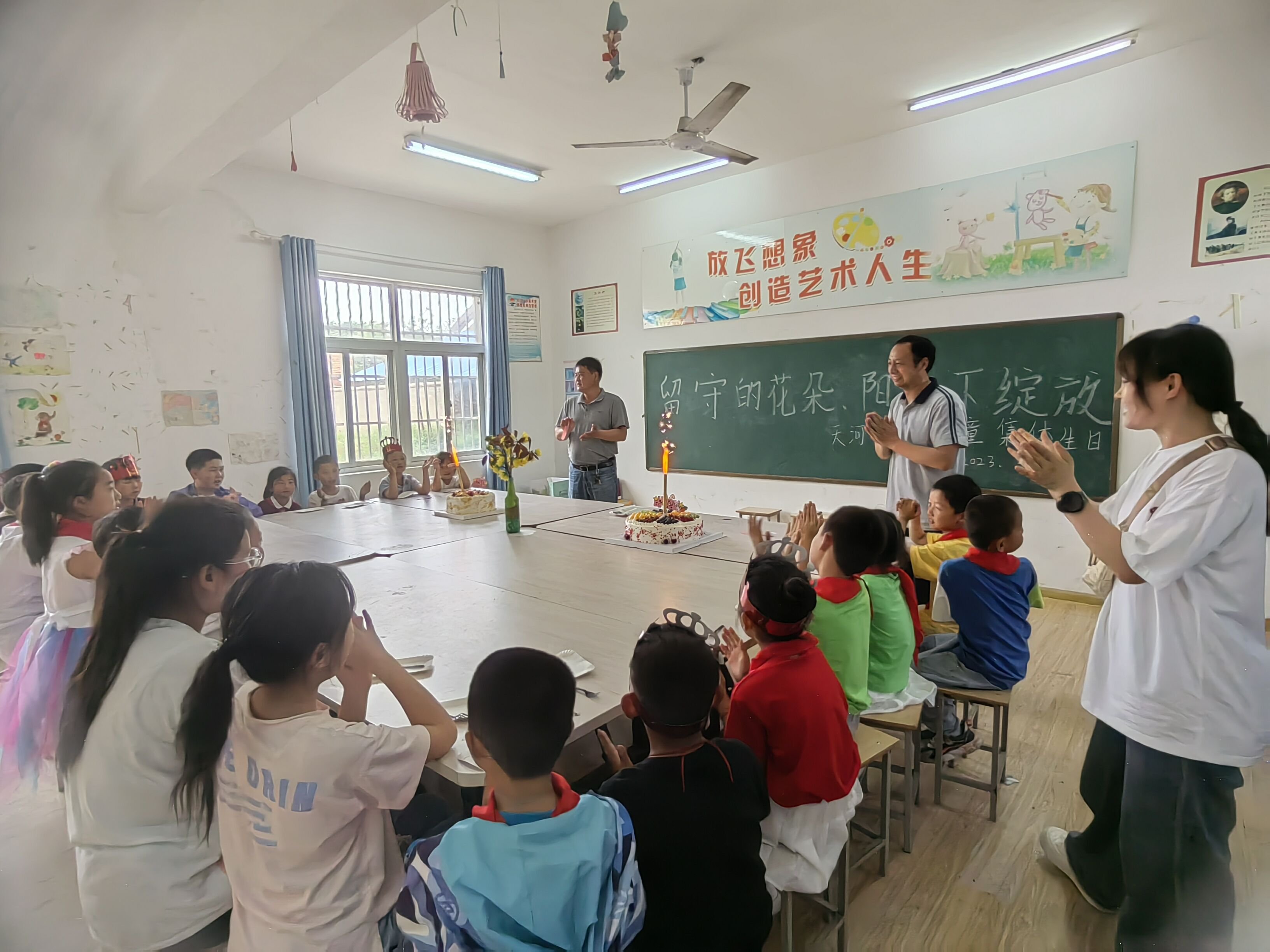 ~ 5月29日下午,定远县天河小学留守儿童功能室为学校全体留守儿童举行了一场特别的集体生日会,为学生送去温暖的陪伴和关爱。 ~ 活动开始,主持人致辞。先赞扬孩子们的坚强努力,教导孩...