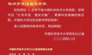 ~ 2024年,滁州市定远英华中学三名学子被中国科学技术大学裸分录取。 ~ 近日,中科大向滁州市定远英华中学发来喜报,热烈祝贺该校李怀雨、刘梅、许昊三名同学被中国科学技术大学录取,...