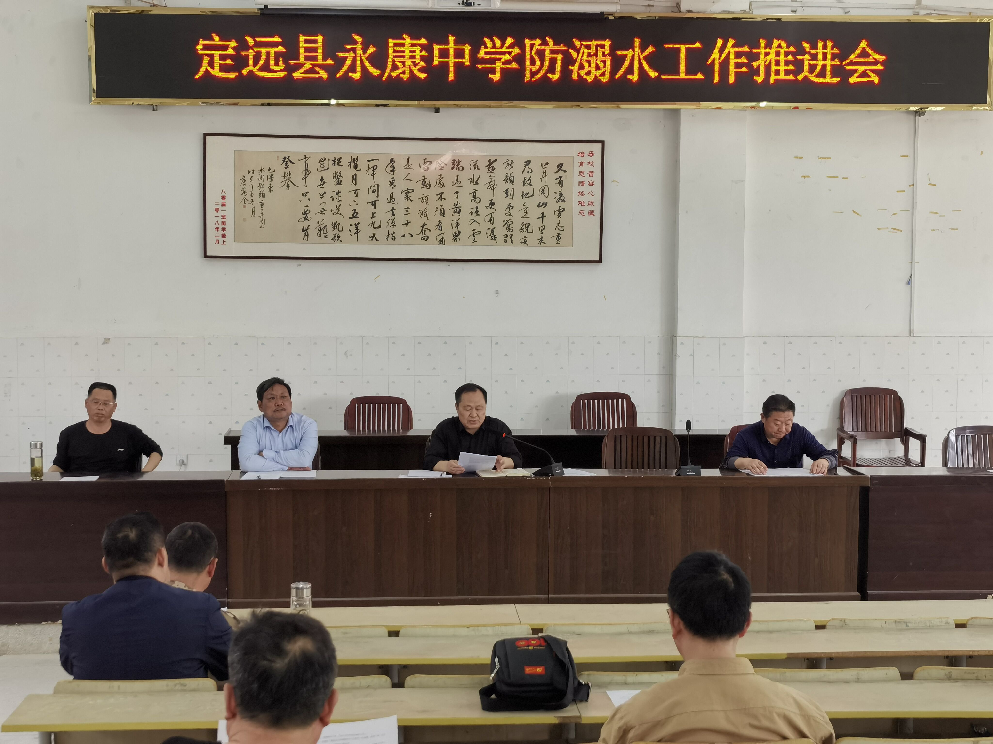 ~ 4月28日,定远县永康中学在小会议室召开校园安全暨防溺水工作会议,认真研究部署校园安全暨防溺水工作,全体行政人员、班主任参加会议。 ~ 会上,校长董志友传达了上级各项关于安全工...