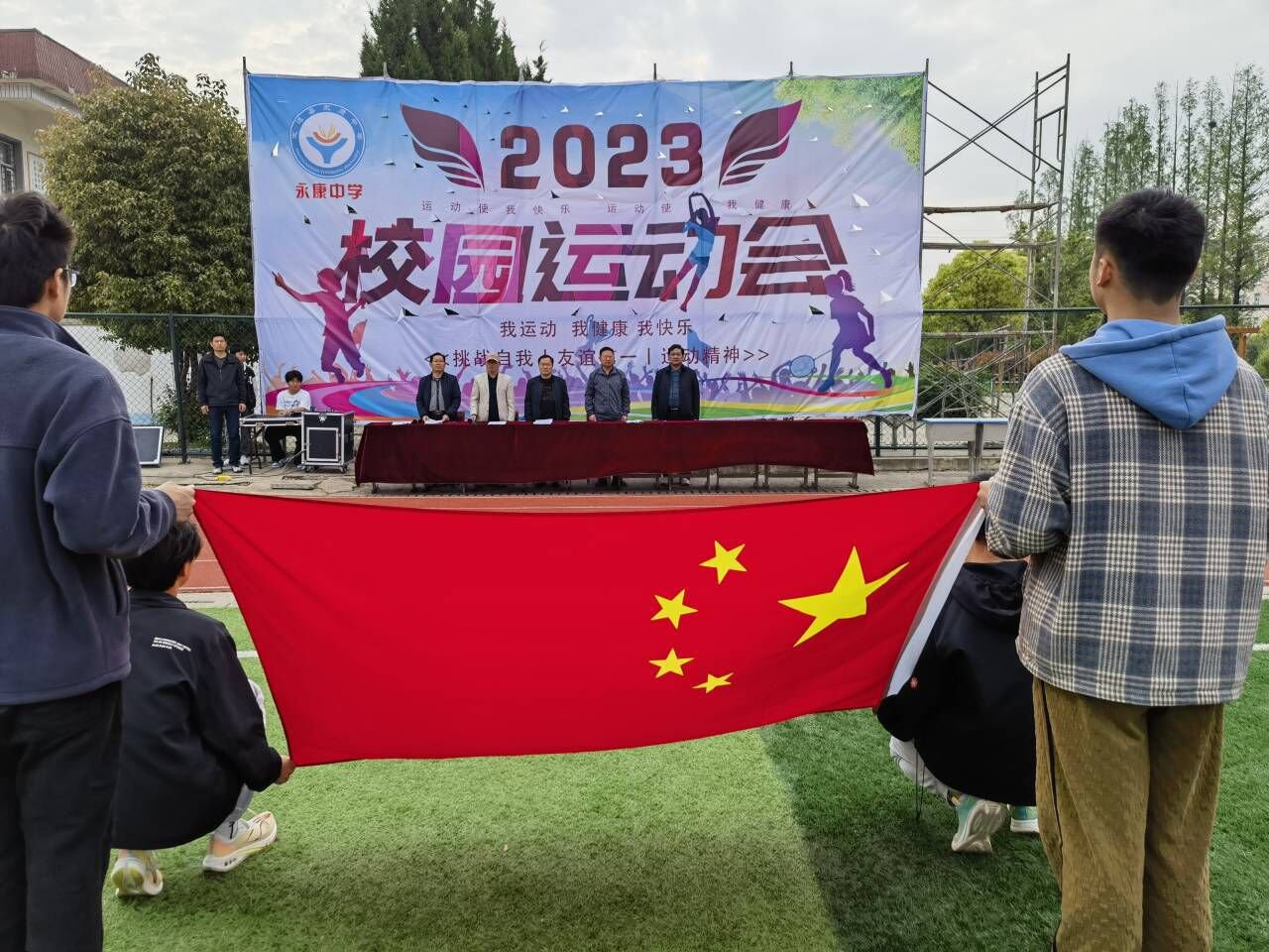 ~ 4月28日,定远县永康中学在校运动场举行2023年春季运动会。 ~ 伴随着激昂的运动会进行曲,国旗队、校旗队、花环队、各班代表队以恢弘的气势,踏着激情澎湃的步伐走过主席台,同学...