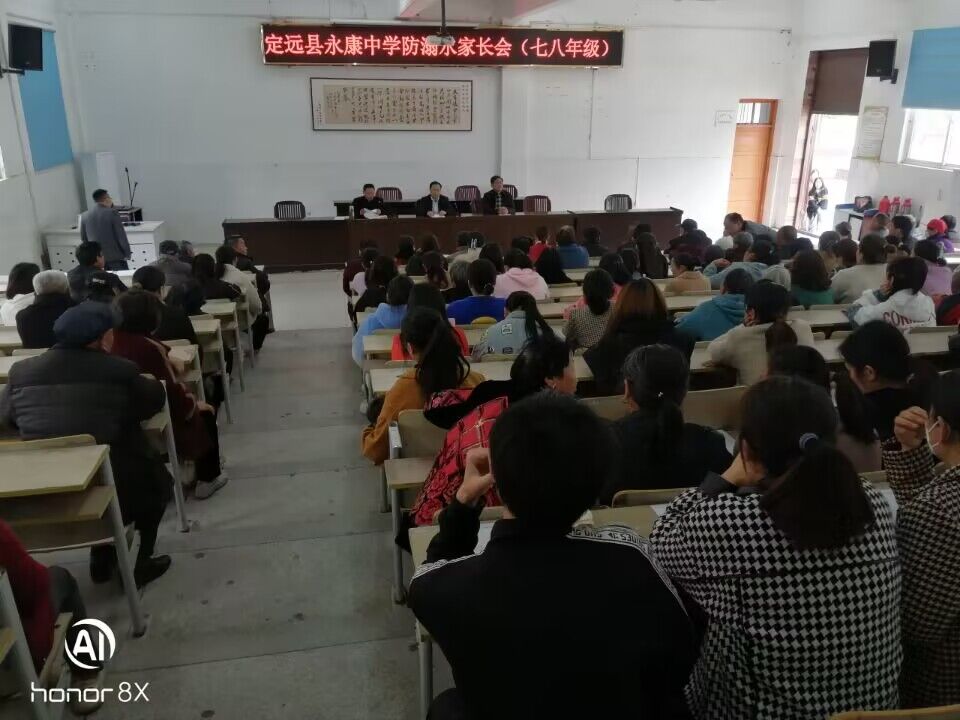 ~ 4月24、25日下午,定远县永康中学在校多功能大厅分年级召开了防溺水专题家长会。 ~ 会上,分管安全工作副校长彭发志分别向与会家长们宣传防溺水的安全教育知识,和家长们共同学习基...