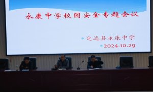 ~ 近日,定远县永康中学在多功能大厅召开校园安全专题工作会。校党支部书记、校长董志友主持会议,全体教职工参会。 ~ 学校分管安全工作负责人分别从交通安全、预防欺凌、消防安全、食品安...